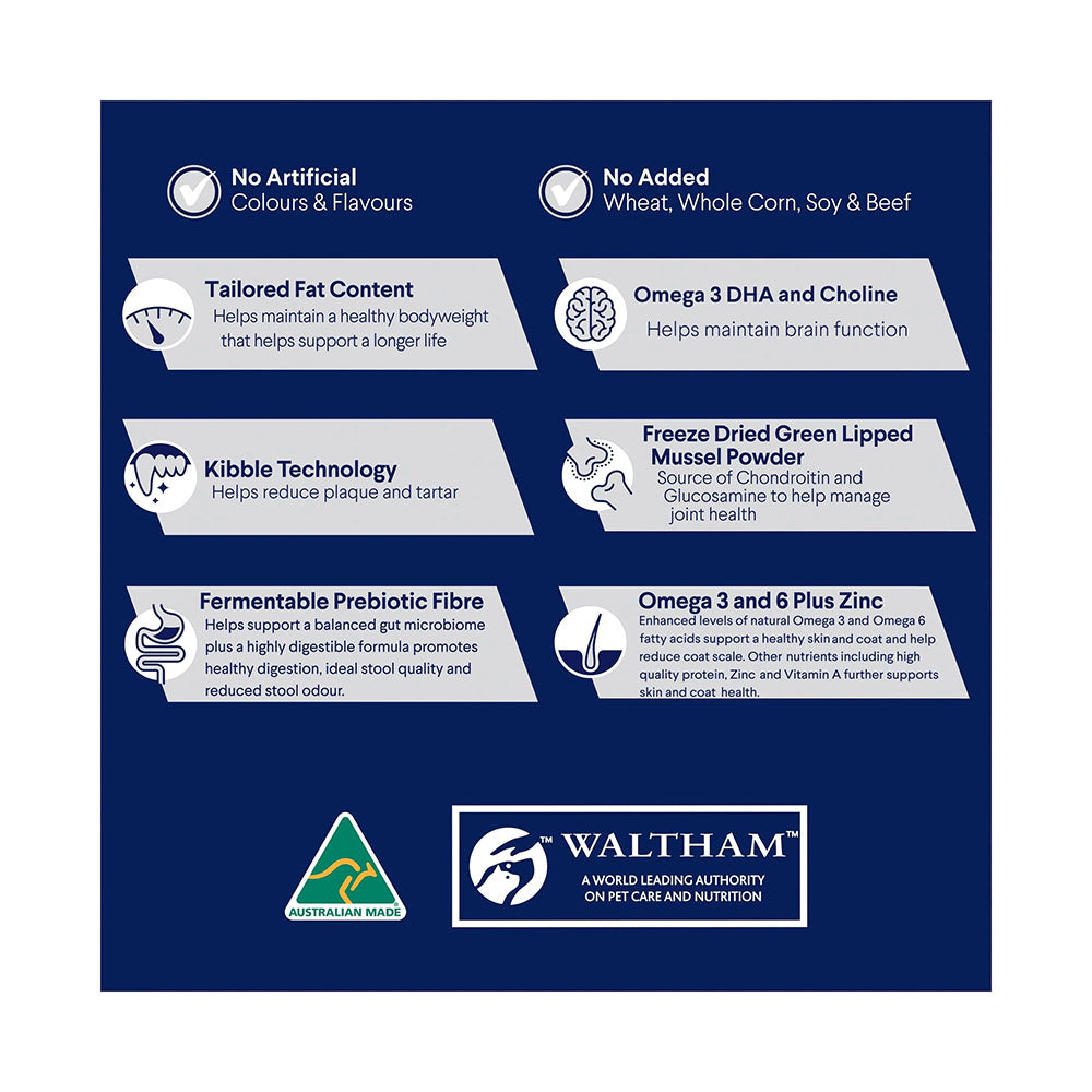 - Skin and Coat Care: Enhanced with Omega 3 and 6 fatty acids, plus zinc, to maintain healthy skin and a shiny coat.