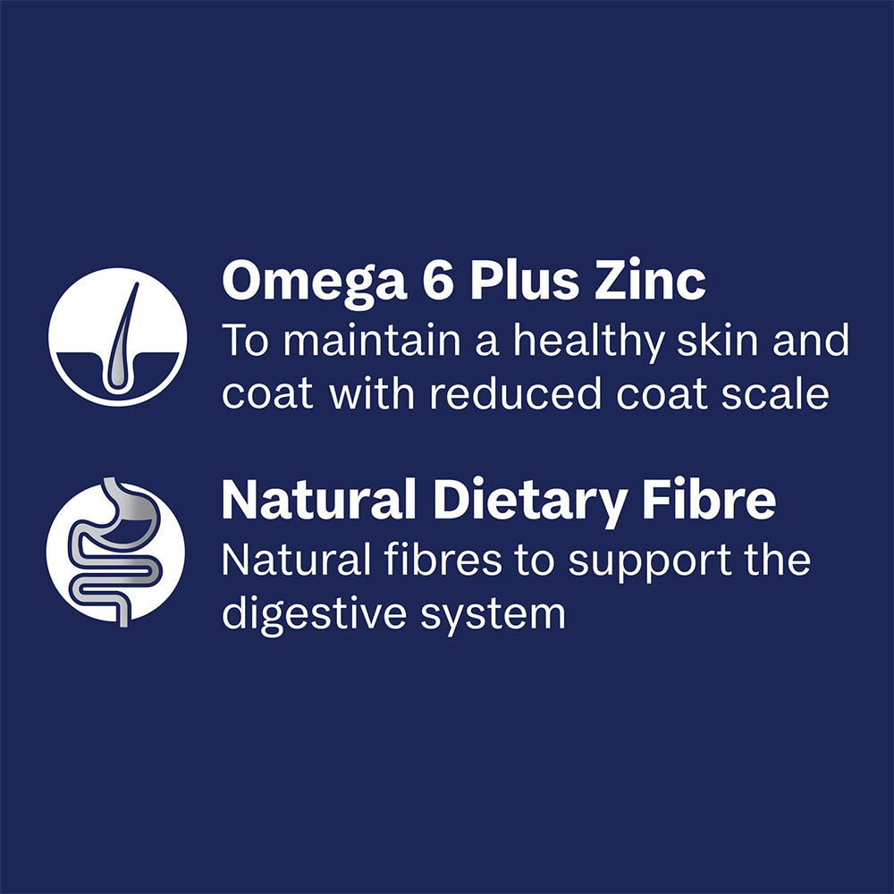 - Omega 6 Plus Zinc: Helps maintain healthy skin and coat, reducing coat scale.