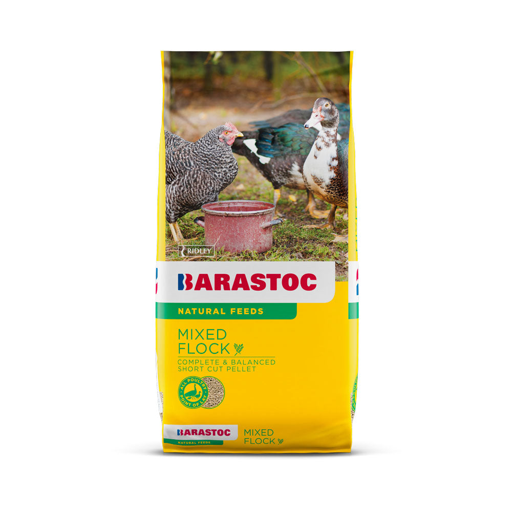 - Ensure BARASTOC Mixed Flock Pellets constitute the majority of the birds' diet for a balanced intake. Other feeds like green scraps, pasture, and hay can be provided in small amounts.