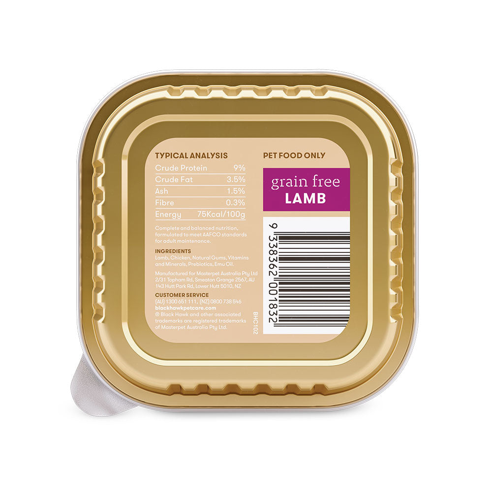Provide your dog with a nutritious and delicious meal using Black Hawk Grain Free Lamb Wet Adult Dog Food. This premium, grain-free wet food is crafted with high-quality Australian pasture-grazed lamb, offering a complete and balanced diet suitable for all breeds.