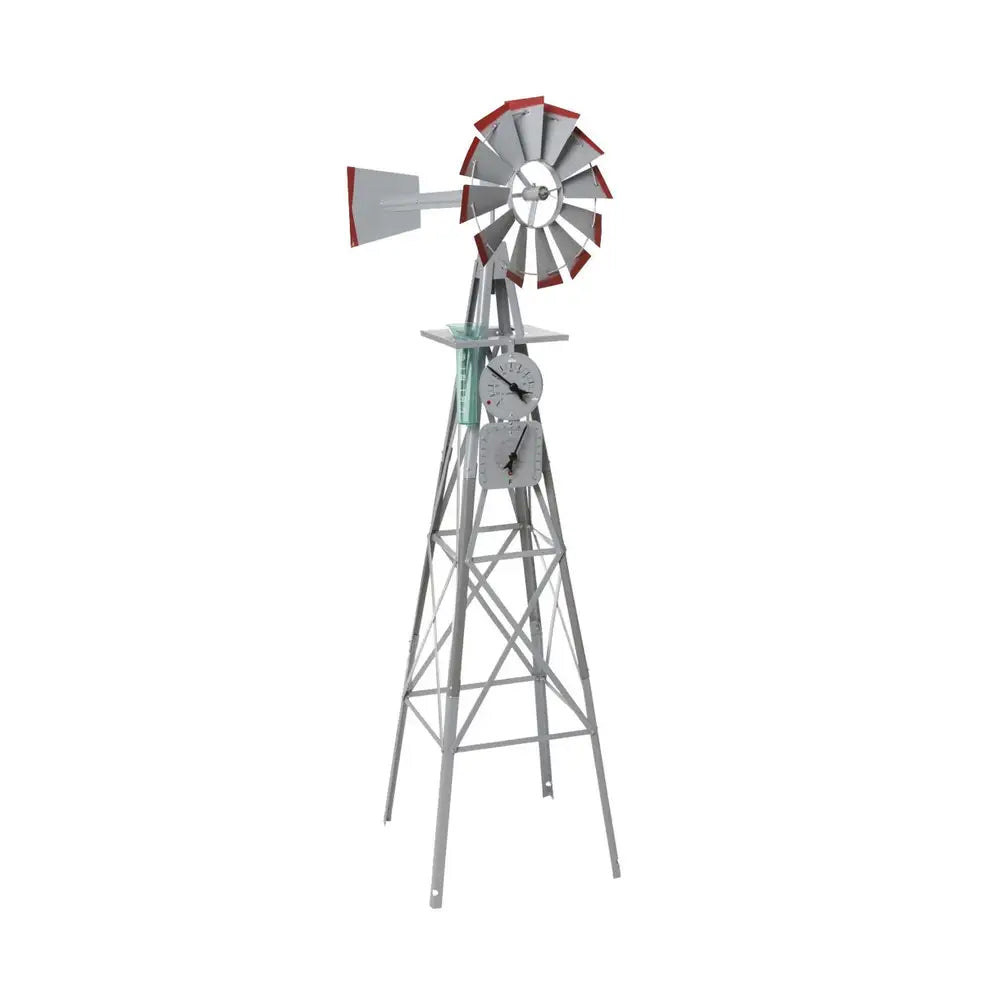 Constructed with durable materials and finished in an elegant grey hue, the windmill is designed to withstand various weather conditions, ensuring long-lasting performance. Its integrated weather station enhances the functionality, making it a valuable tool for gardening enthusiasts and weather watchers alike.