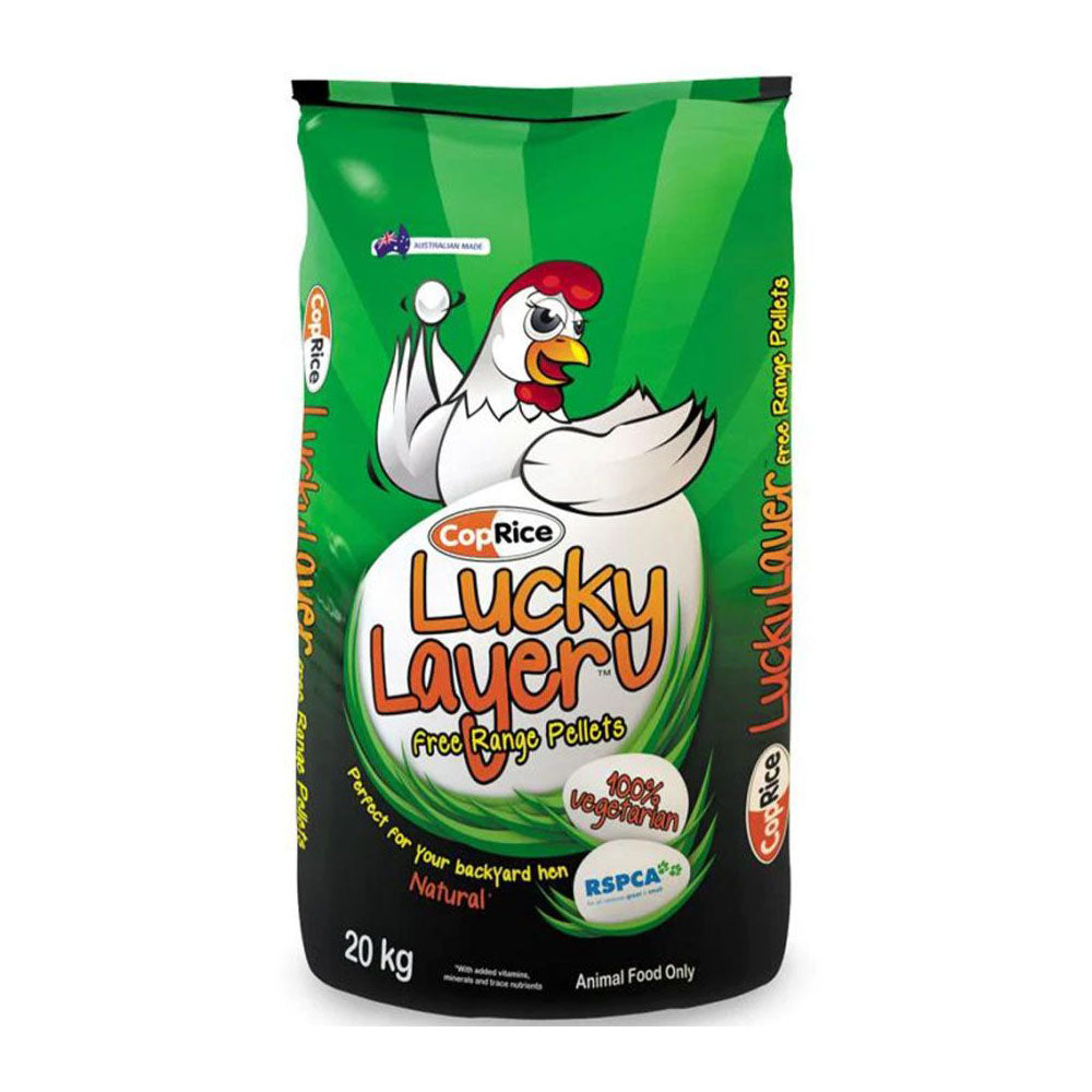 CopRice Lucky Layer is a perfectly balanced and complete pelleted feed providing all of your hen's daily nutritional requirements. It uses the best natural ingredients with added vitamins, minerals, and trace nutrients, including high-quality vegetable proteins to supply essential amino acids, great for egg production and size.