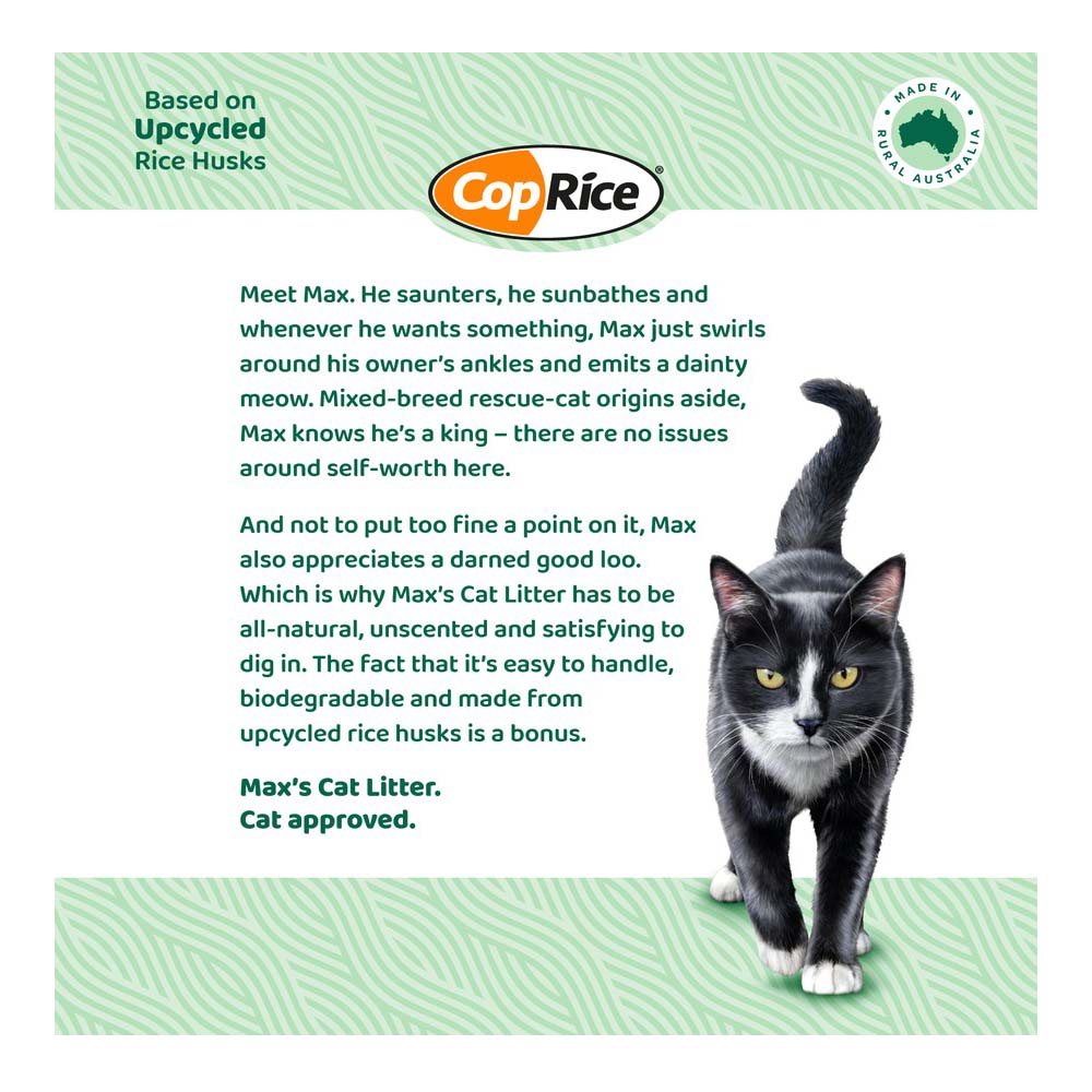Committed to sustainability and pet care, Max’s Cat Litter is Australian-owned and operated, using premium recycled materials to deliver a product that naturally suppresses odours and supports a clean, healthy home. Max’s dedication to eco-friendly practices ensures every bag contributes to a more sustainable lifestyle while meeting the highest standards for pet comfort and hygiene.