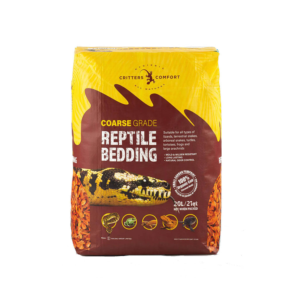CRITTERS COMFORT Coarse Grade Reptile Bedding is a natural and highly absorbent substrate designed to create a comfortable and hygienic habitat for reptiles. Made from sustainable coconut husk, this eco-friendly bedding provides excellent moisture retention while helping to control odours and maintain proper humidity levels.