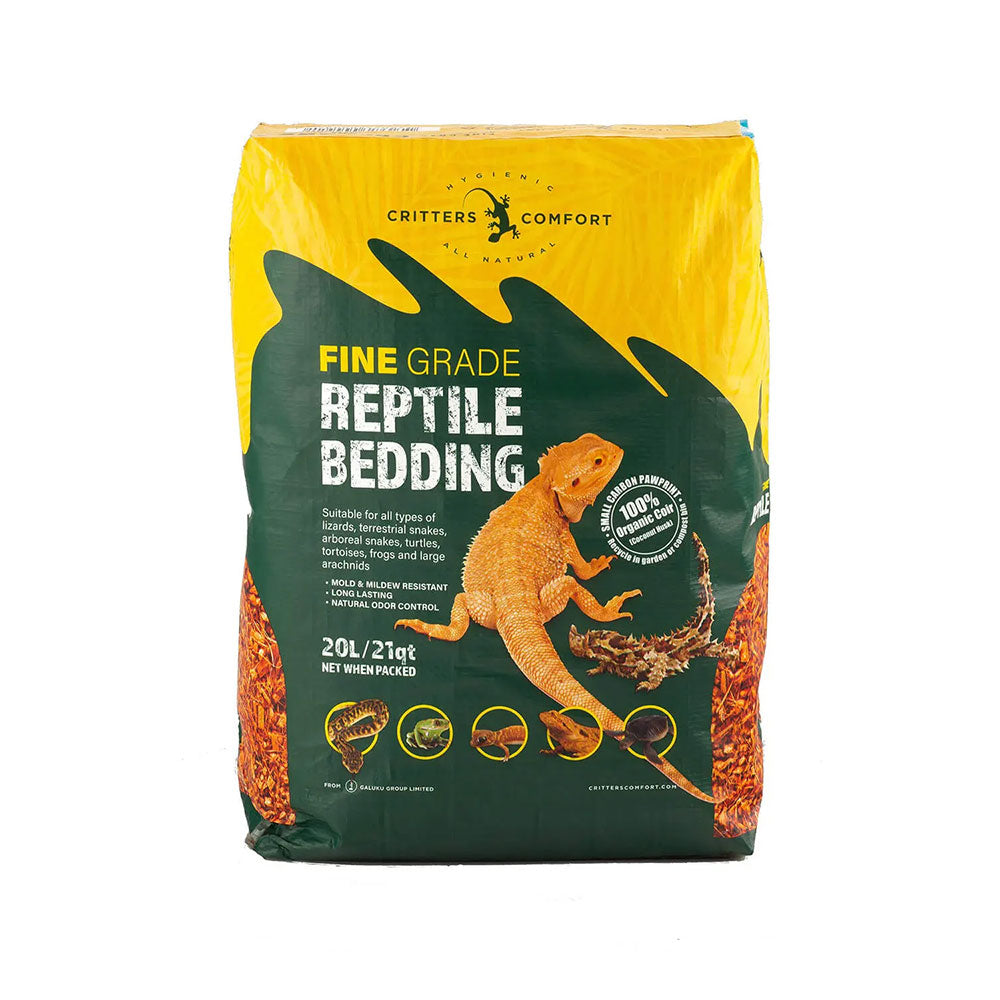 CRITTERS COMFORT Fine Grade Reptile Bedding is a premium, natural substrate designed to provide a soft, absorbent, and hygienic environment for reptiles. Made from sustainable coconut husk, this eco-friendly bedding helps regulate humidity, control odours, and maintain a clean enclosure.