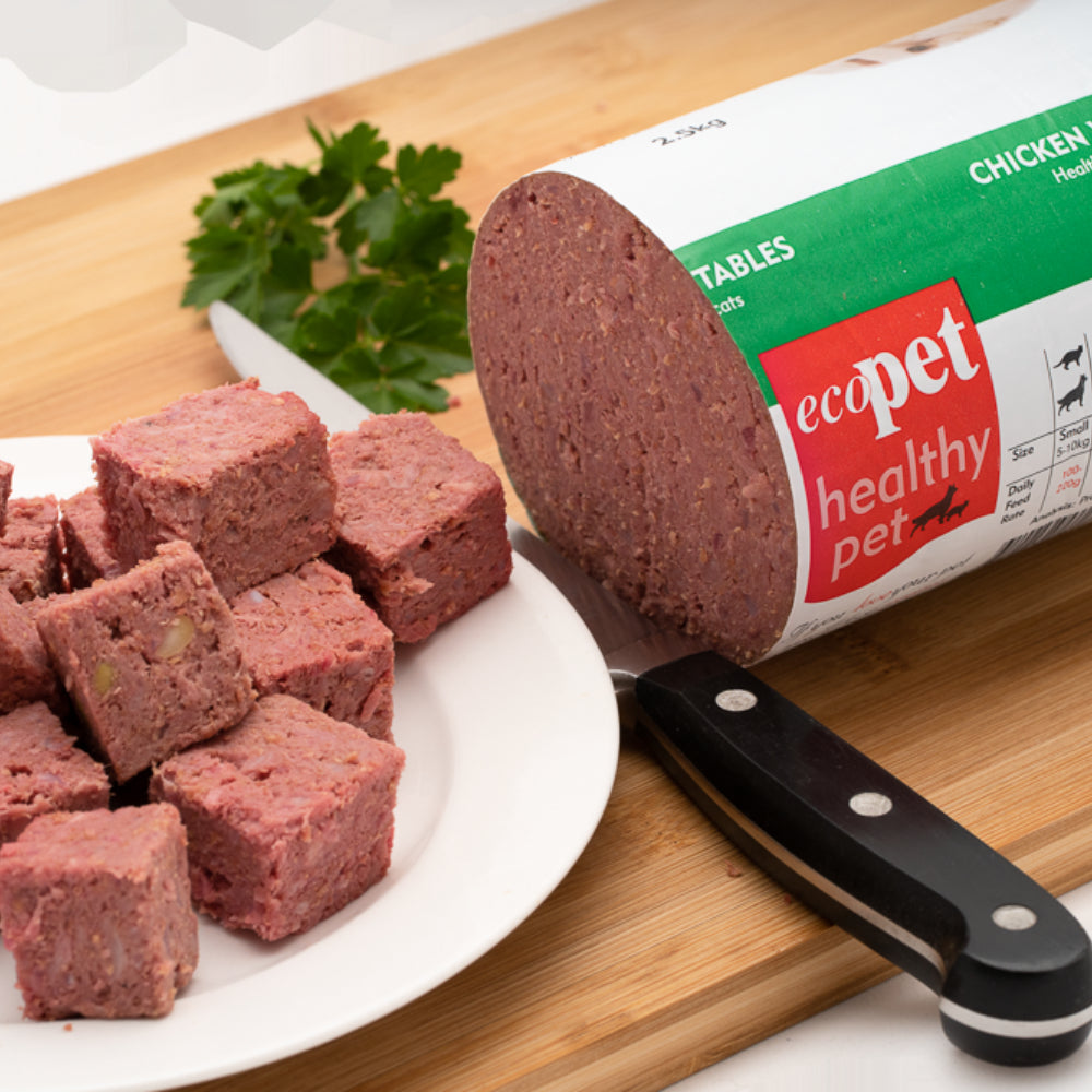 Ecopet rolls are crafted with natural, wholesome ingredients. These ingredients are meticulously blended, sealed into their containers, and gently steamed under low pressure. This process ensures that maximum nutritional value is retained for your pet in a convenient form.