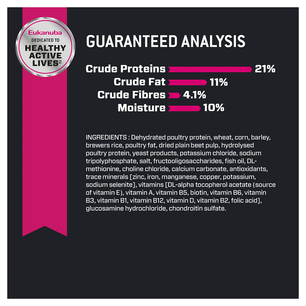 EUKANUBA Adult Large Breed Dry Dog Food is a top-tier choice for your large canine companion! This specially formulated feed is designed for large breed dogs over 18 months old weighing over 55 lbs.