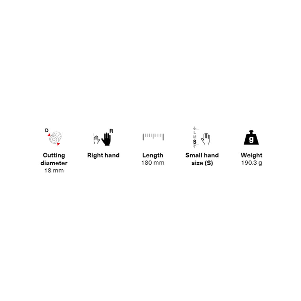 - Compact Design: With a length of 180mm, these shears provide outstanding manoeuvrability, especially suited for smaller hand sizes.