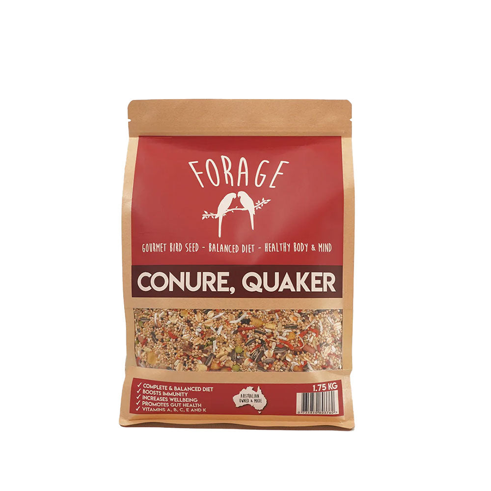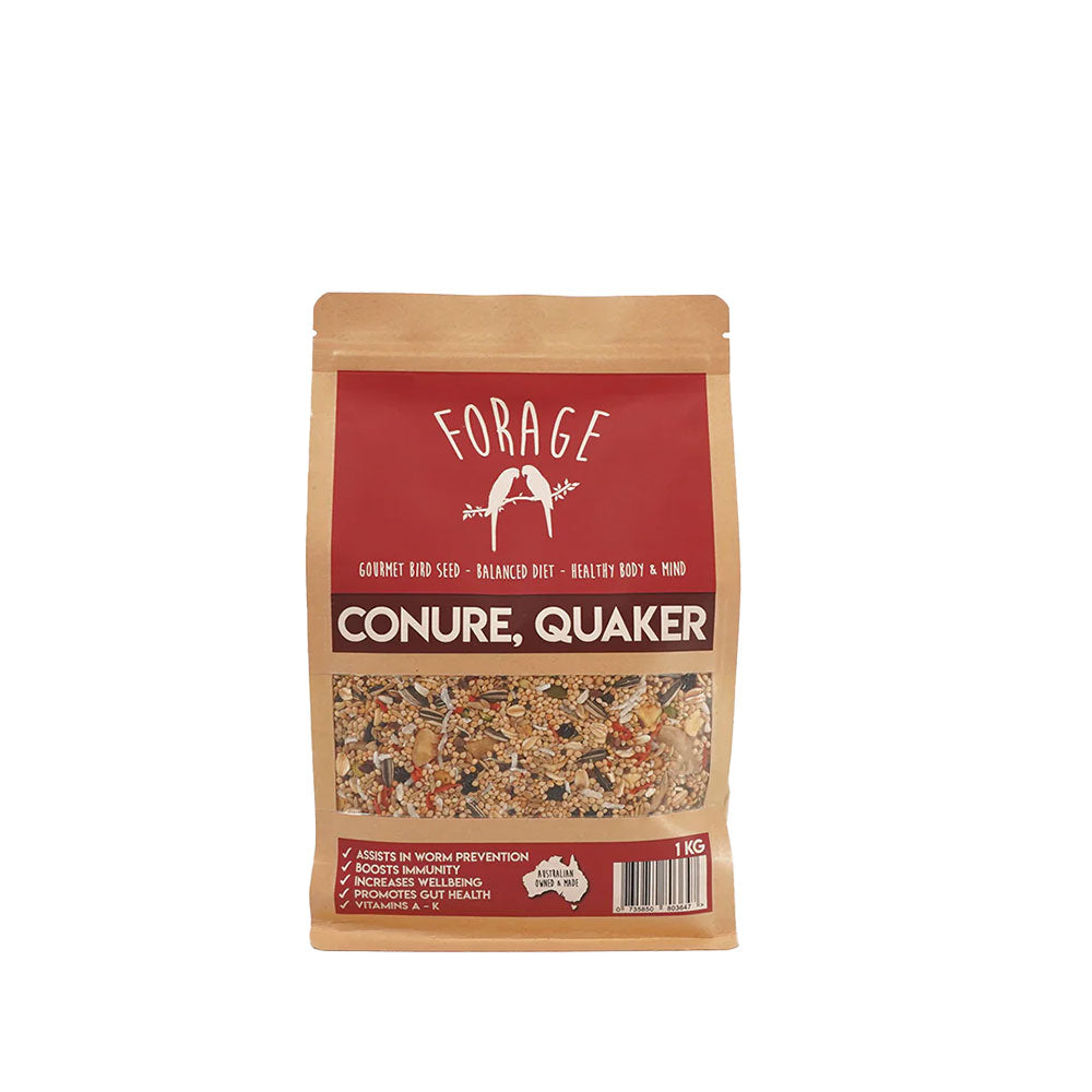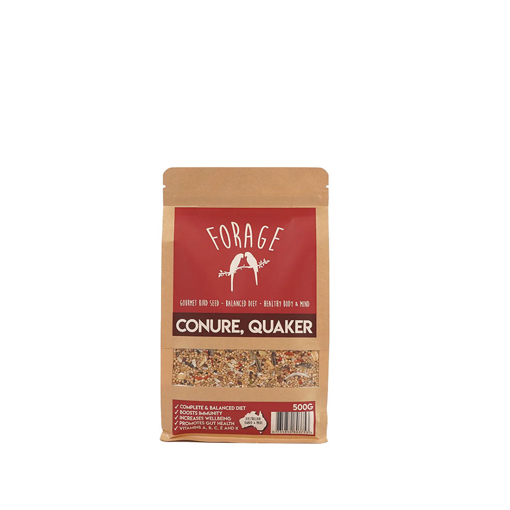 Bring joy to your birds with the FORAGE Gourmet Bird Seed: Conure & Quaker Specialty Blend.