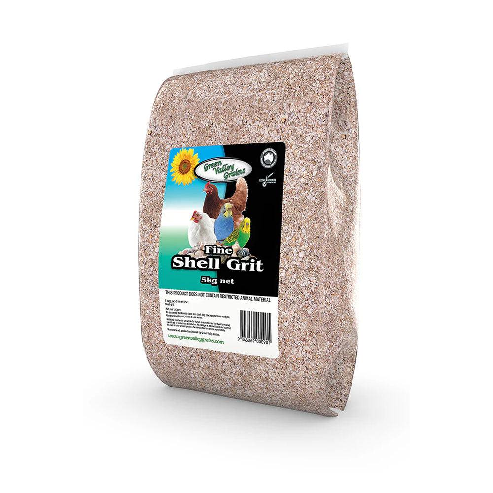 GREEN VALLEY GRAINS Fine Shell Grit - 5kg is a crucial dietary supplement for poultry, providing a finely ground source of calcium that supports strong eggshell formation and overall bone health. Perfect for smaller birds and young chicks, this fine shell grit also aids in digestion by helping to grind food in the gizzard.