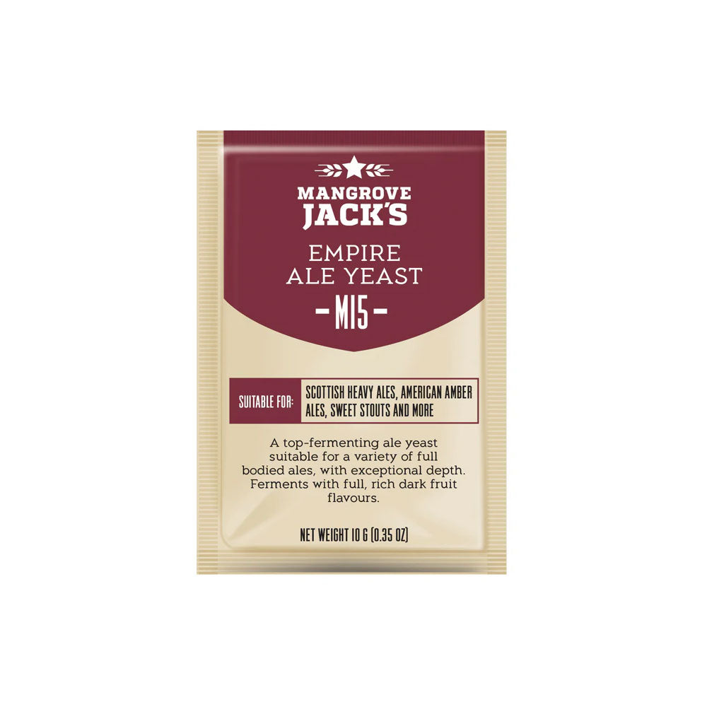 Craft bold, well-balanced ales with MANGROVE JACK'S M15 Empire Ale Yeast. This top-fermenting yeast is perfect for brewing classic British-style ales, including bitters, porters, and strong ales, delivering a rich malt backbone with subtle fruity esters.