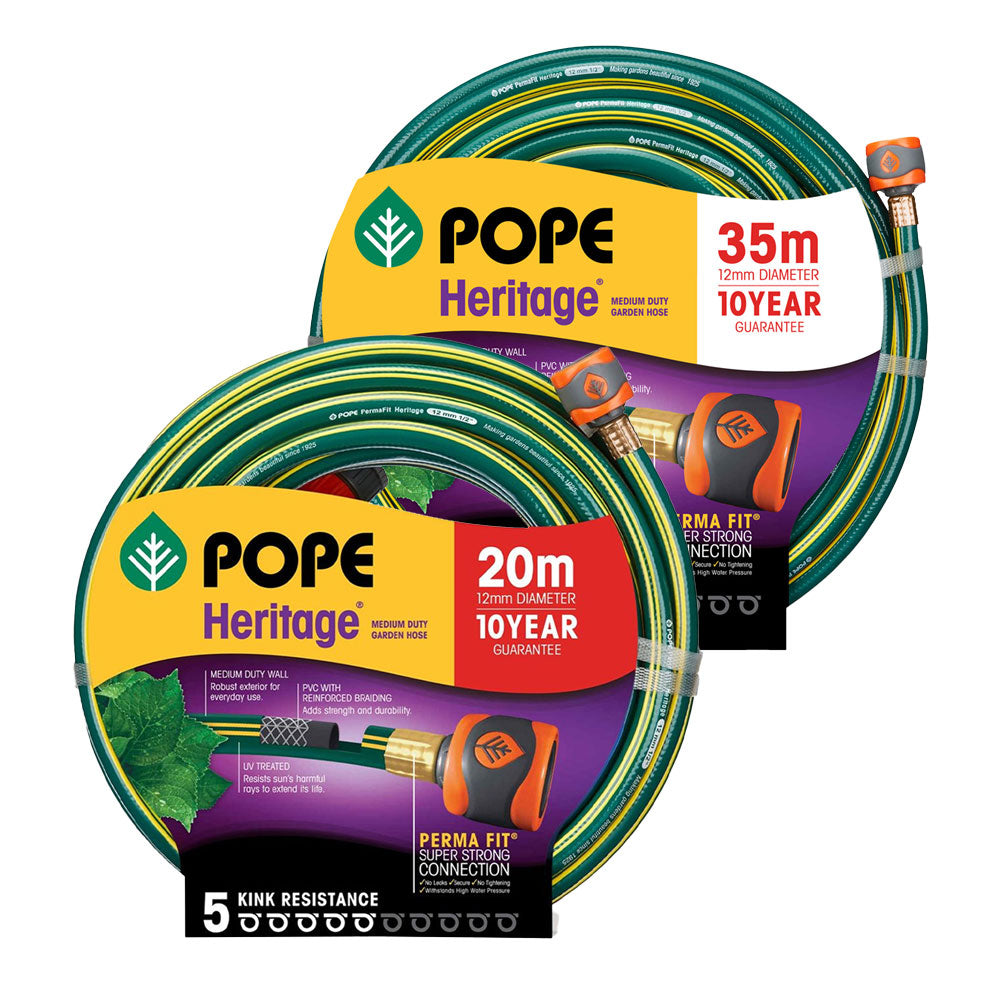 POPE 12mm Heritage Garden Hose is a medium-duty, reinforced braided hose designed to provide reliable performance for everyday garden watering tasks. Its durable construction and user-friendly features make it suitable for maintaining small to medium-sized gardens.