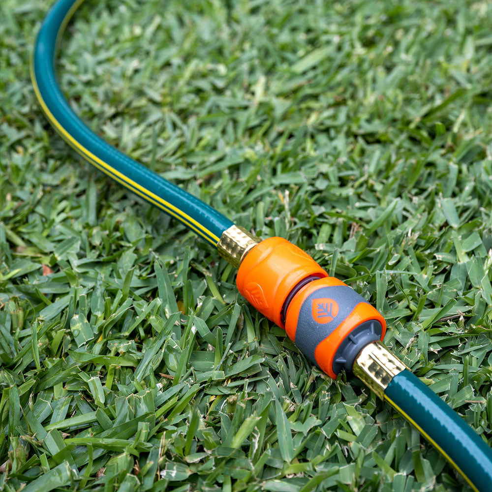 This hose extender comes equipped with two 12mm Perma Fit® hose connections and one two-way hose coupler, facilitating quick and secure connections between hoses or watering accessories. The UV-treated material enhances longevity by protecting against sun damage, ensuring the hose withstands various weather conditions.