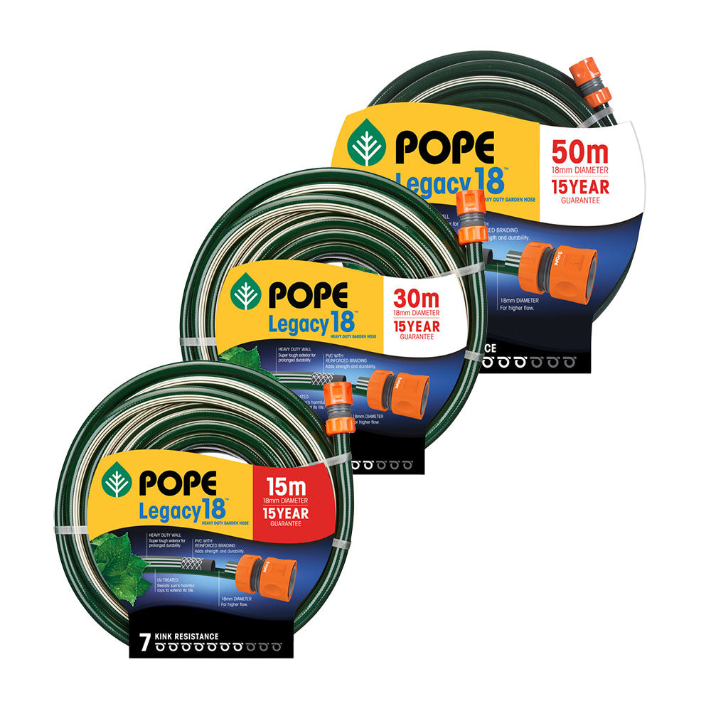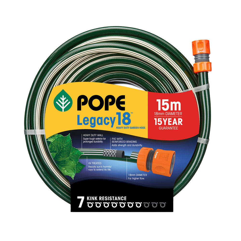 Upgrade your garden irrigation system with the POPE 18mm Legacy Garden Hose, delivering superior water flow and durability to meet all your watering needs.