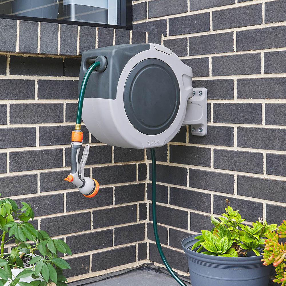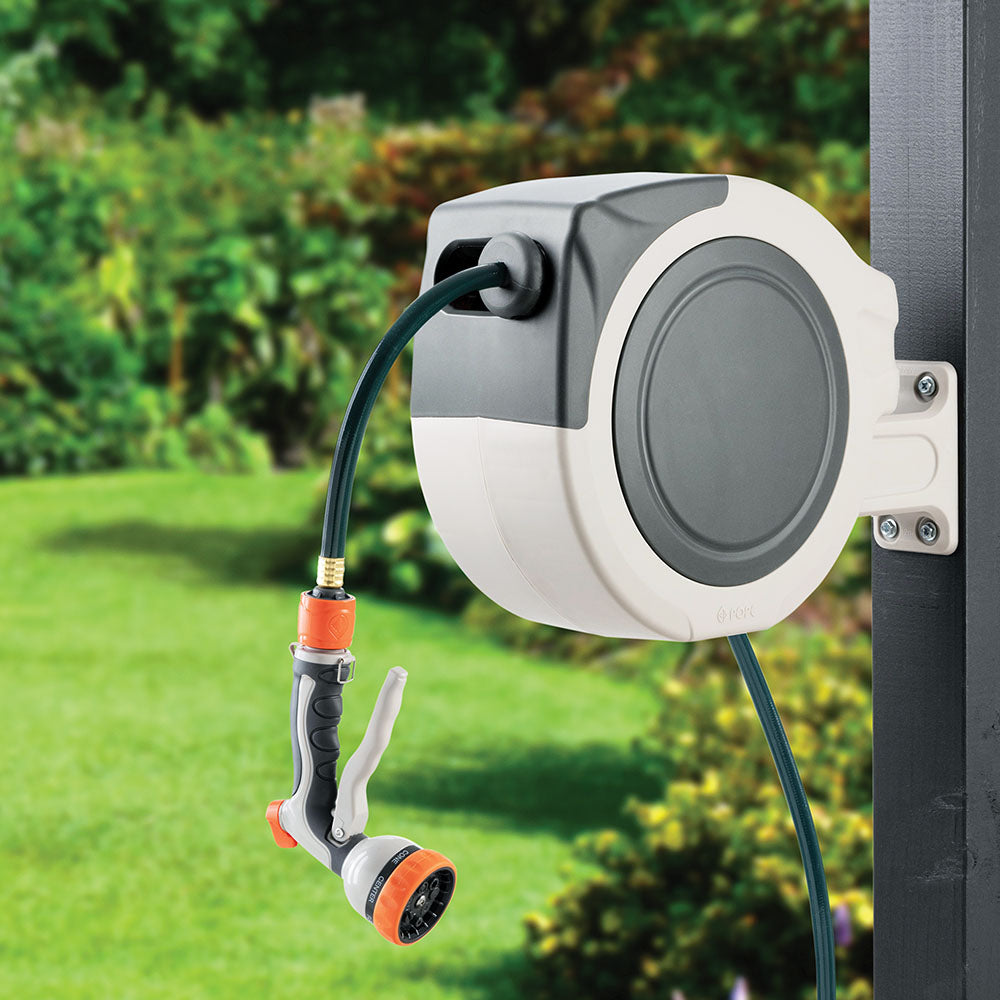 The POPE Auto Wind Hose Reel is a convenient and efficient solution for garden watering, designed to keep your hose neatly stored and easily accessible. This automatic retractable hose reel is perfect for keeping your garden tidy and ensuring that your hose is always ready for use.