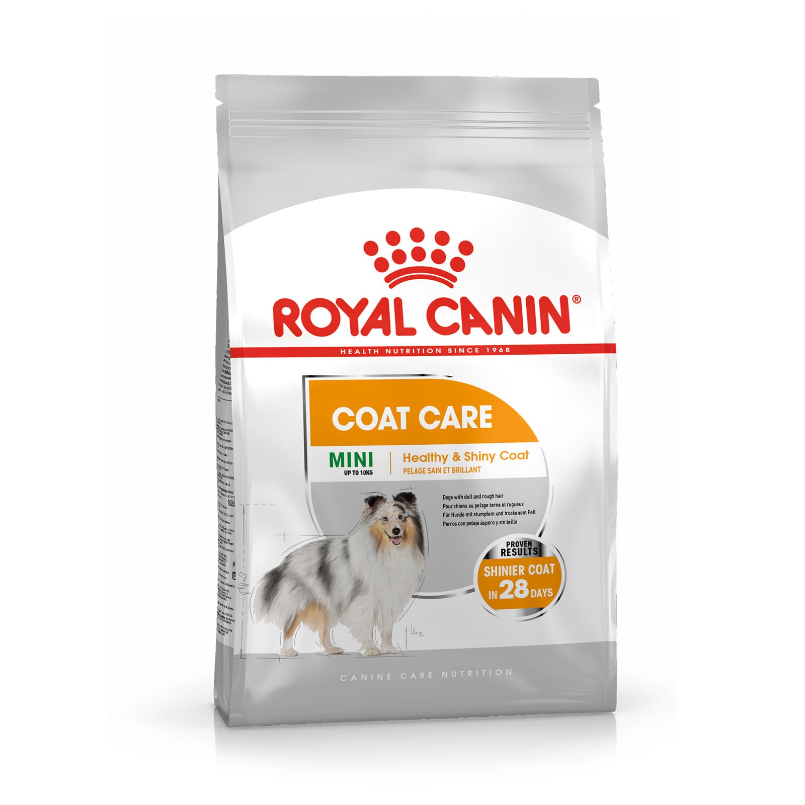 Your dog's rich and silky coat is not just beautiful, it also reflects his or her good general health and nourishment. The best way to look after your dog's coat is from the inside out • starting with good food. ROYAL CANIN® Coat Care Mini's delicious-tasting complete nutrition nurtures a full and vigorous coat, giving your dog the gift of looks, but more importantly, the gift of health.
