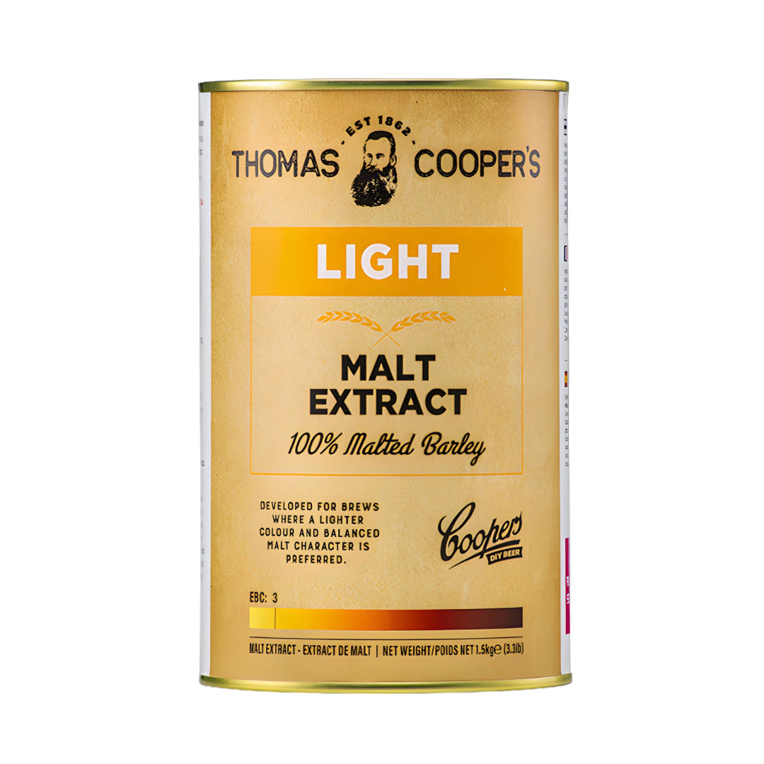Achieve a richer, smoother homebrew with THOMAS COOPER'S Light Malt Extract (1.5kg). Order now and take your brewing to the next level!