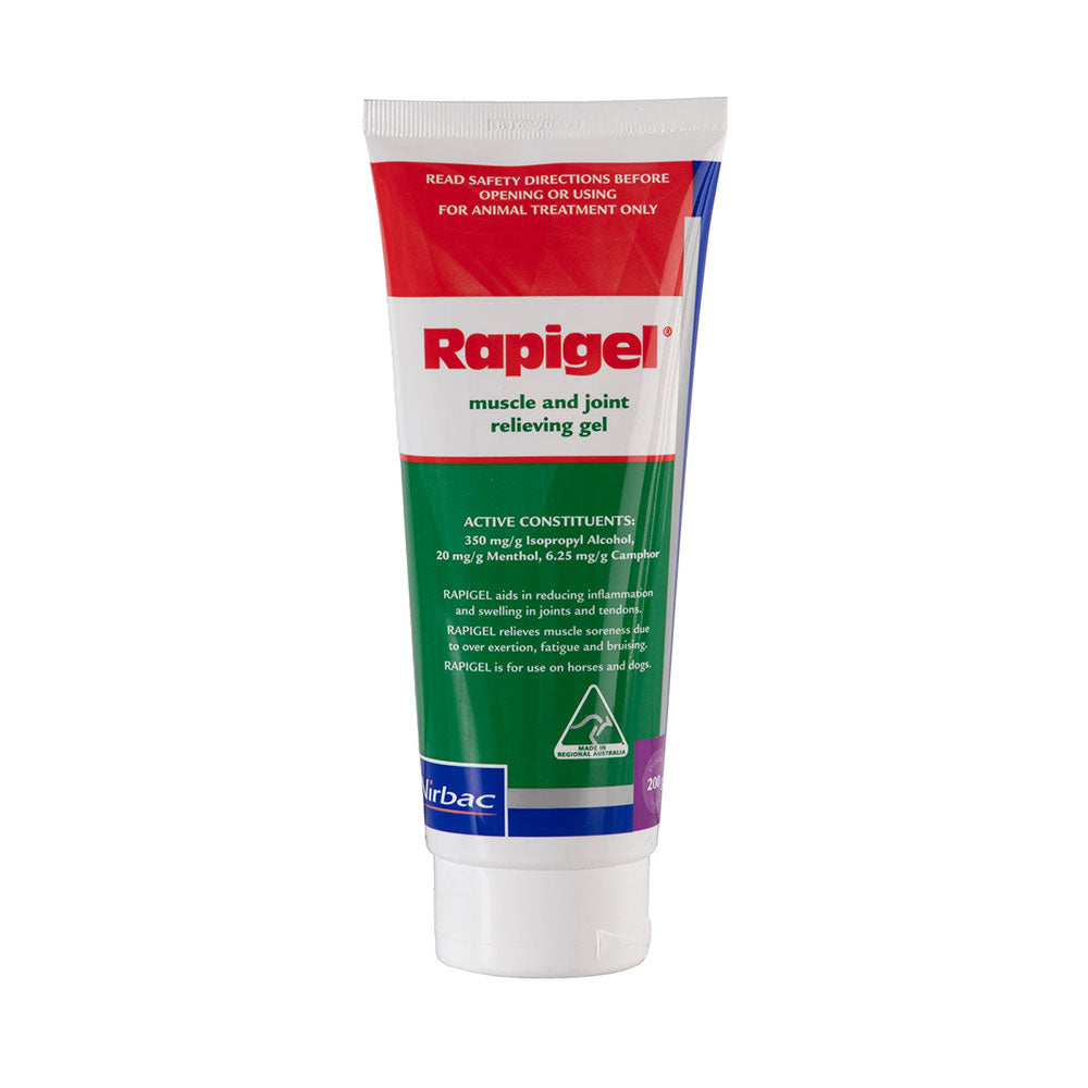 Apply Rapigel directly to the affected area. Massage gently into the skin as needed to relieve stiffness and soreness. For best results, use after exercise or as directed by a veterinarian. Avoid applying to broken skin.