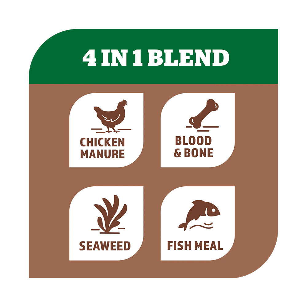- Suitable for vegetables, ornamentals, fruit trees, lawns, shrubs and general garden use.